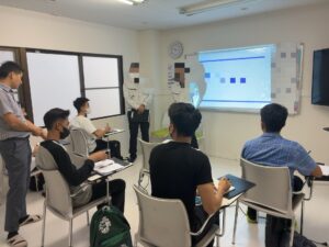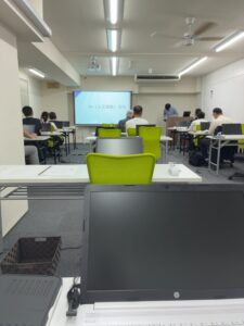 今日は、会社の工場長と係長が講習中の実習生達に 会